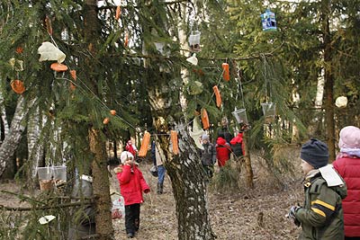 Снега в этом году нет, но Новый год никто не отменял. И Детская студия «Камелот» пошла в лес наряжать елку для животных и птиц. Украшения Были необычные: гирлянды из морковки, капусты, сала; фонарики с семечками и орешками для птиц. Вместе с детьми пошли и экологи «Нового Акрополя», которые рассказывали и показывали жизнь леса зимой.